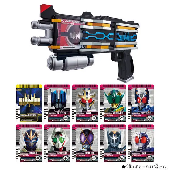 – The included plastic rider cards include 9 [Kamen Ride] cards and a [Final Attack Ride Diend] lineup.